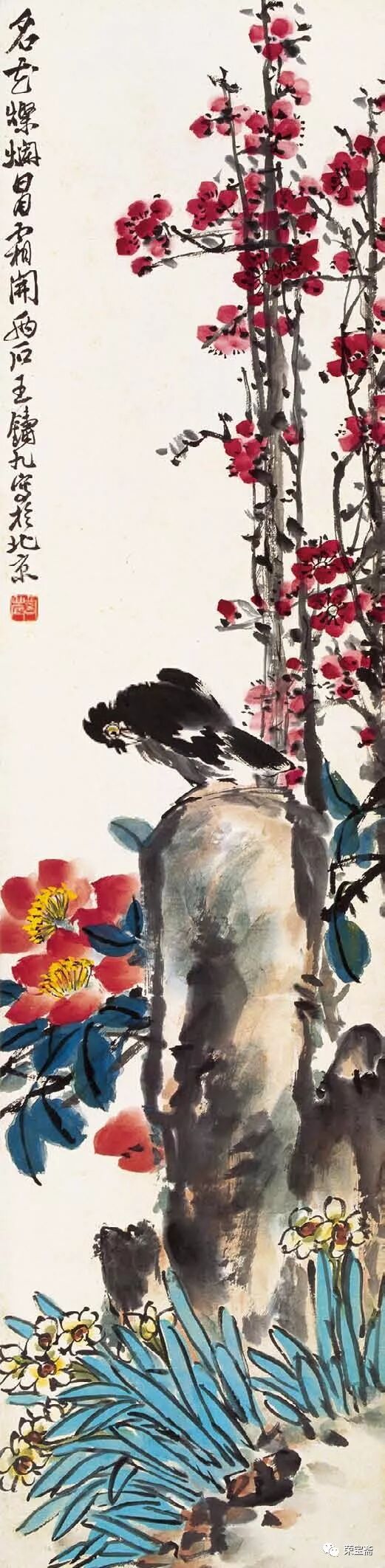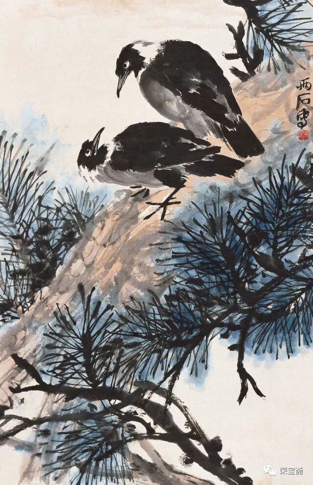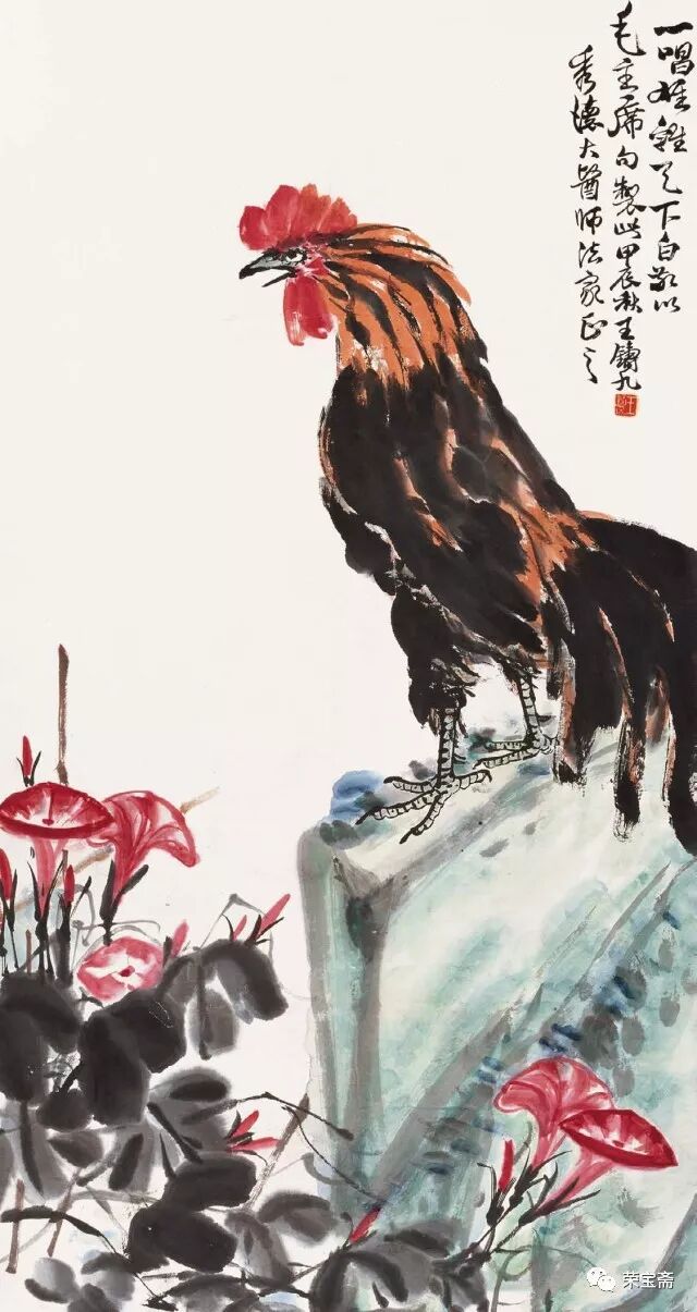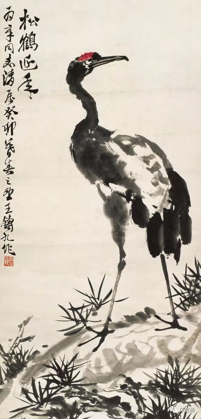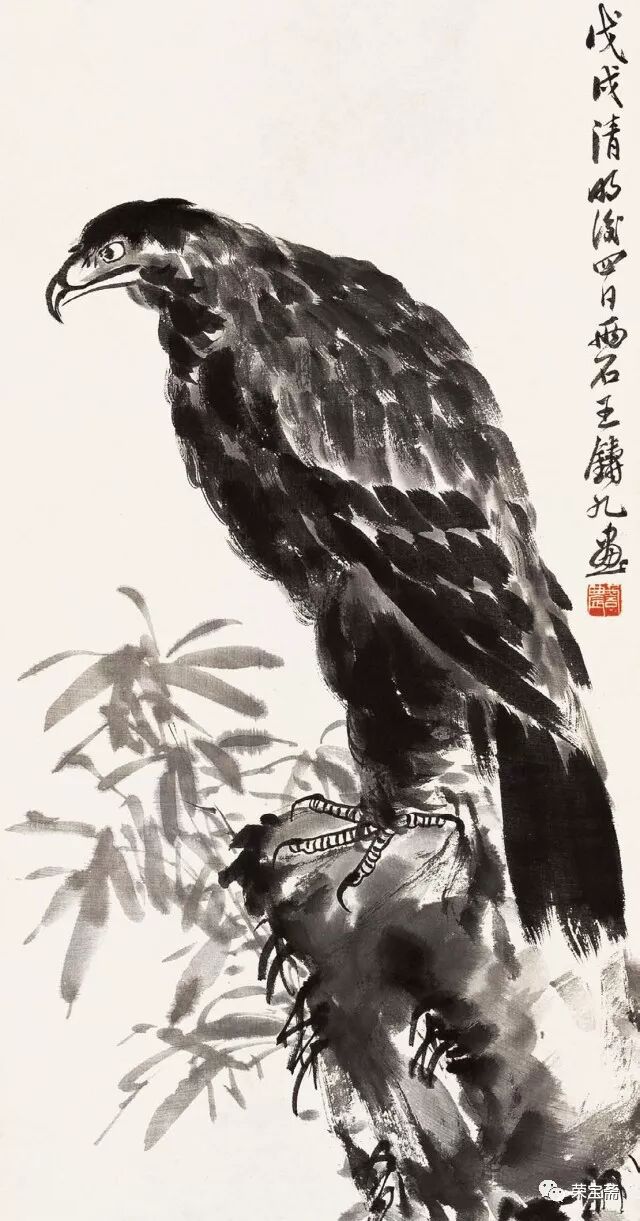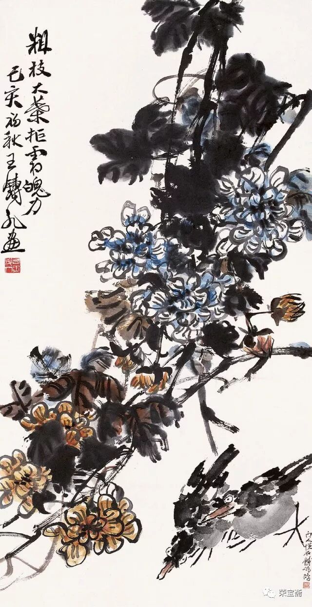 文 / 少白公子 王铸九是齐白石弟子中少有的以军人品性勤奋创作且造诣不凡的大家。他擅长大写意花鸟画,在师承吴昌硕、齐白石并上溯徐渭、八大、石涛诸家遗风的基础上,在刻苦研习与长期创作中,形成了自己气势雄强奔放、笔墨沉实泼辣、色彩浓郁华滋、充满勃勃生机的“两石”风貌。王铸九生于二十世纪伊始的一九〇〇年,卒于“文革”伊始的一九六六年。因性格耿介刚烈、不堪忍受“文革洗礼”,自缢于画室,弃世而归天。成为生命不长、传世作品不多但人格与作品不朽的艺术家。有关王铸九的资料不多,学界对其关注更是不够,本文以文献资料为基础,参照荣宝斋所藏的王铸九作品,梳理其亦文亦武的“三苦”人生、论述其“两石”风格与李苦禅异同、剖析其“宁为玉碎,不为瓦全”的“嶦农”性格,为二十世纪美术史勾勒一位铁铸铮铮、画如其人、骨气夺人的王铸九。 一 亦文亦武的“三苦”人生 王铸九(一九〇〇——九六六)原名王鼎,字嶦农,河南舞阳人。王铸九有“三苦”:出身贫苦、生活艰苦、学习刻苦。早年念过几年私塾,随后在舞阳师范学校求学时,“以粗粮干饼加萝卜咸菜度日,有时粗粮干饼长了绿毛,就经太阳晒晒继续吃”。艰苦的条件使王铸九养成了吃苦、坚毅的性格,他曾起堂号“百忍堂”,正是那时生活艰苦与修炼品性的缩写。王铸九二十二岁毕业于舞阳县师范学校,因成绩优异,留校任教两年。后为摆脱生活贫苦,投笔从戎,“加入直系萧之楚部队,先后任连队文书,营部书记官;一九二五年被萧之楚提升为团部书记官,旅部上校参谋;一九二六年经同学赵子久(军需主任)介绍入冯玉祥部队,任第六军少校政治员;一九二七年,王铸九随冯玉祥部队参加北伐战争,加入西北军序列。萧之楚任第二集团军(总司令冯玉祥)第三方面军(总指挥韩复榘)暂编第一师中将师长,王铸九被任命为暂编第一师少将总参议。王铸九奉命攻打张宗昌直鲁联军,收复豫东地区”。北伐胜利后,王铸九不愿继续参加内战,回到老家,“一九二八年夏在舞阳县城参加了中共舞阳县特别支部委员会的成立,后因策划武装暴动失败,被迫离开家乡,按地下党组织的指示,重返萧之楚部队,任副官处长、联络参谋;中原大战后,王铸九随部队移防山东,负责所在部队与山东省政府(韩复榘任省主席)的联络工作,韩复榘主政山东不久,积极推行乡村建设,指定民政厅长李树春负责培训全省各级干部,王铸九从萧之楚部队被选拔后任山东省堂邑县县长。任职期间,王铸九深入农村,积极推进乡村建设,因工作出色,卓有成效,韩复榘下令奖励该县军用卡车两辆,在当时的山东全省造成了很大轰动”。这是对王铸九工作的充分肯定与褒奖。 “抗战初期,韩复榘、李树春等路经河南时,专门看望了王铸九,特向他赠送一支德造的二十响驳壳枪和一柄刻有‘王铸九’名字的宝剑”,这也是对王铸九戎马生涯的永久纪念。但是否因这些历史印记给他在“文革”中招致了麻烦?我们不得而知。 王铸九 对话 1957 一九二九年,二十九岁的王铸九赴京拜齐白石为师,学画八年;卢沟桥事变后,王铸九已无法继续留京学画,只好携家人回到河南老家。临行前,他把家里的用具都寄存在齐白石家,以便日后继续跟随白石师。返回家乡的王铸九从事教育工作,曾任县中学语文教员,也当过小学校长、中学校长,任教期间从未中断过绘画创作。抗战胜利后的一九四六年冬,王铸九携长子重返京都,开始了他钟爱的绘画生涯。 王铸九 鹰 1958 王铸九在艺术上是以军人的毅力深下苦功的。为学好篆刻,他经常刻至深夜,刻了磨,磨了再刻,直到满意为止,弄得桌上地上都是泥浆。他习字习画都用元书纸,稍微好一点才用夹江纸,用不起宣纸。为了画好一枝一花、一鸟一虫,他在废纸的正反面无数次地练习,直至把纸全部画黑为止。他的勤奋刻苦深得齐白石的赞赏,白石曾言:“王生从我学画不到一年,而胜过多年者矣。”王铸九不仅自己刻苦,而且还严格要求子女同样勤奋,打好扎实的诗书画基本功,其长子说:“我七岁上学,八岁时父亲即教我画画、练字、学诗、读古文。父亲对我要求很严,每日必写一百个毛笔字,画一张画,偷懒完不成就罚跪打手板……父亲返京继续跟随白石老人学画后,我也随父亲常去白石老人家,时常为其研墨抻纸,也得以看白石老人作画。”由此可见,王铸九自己勤奋的同时也注重培养后人的刻苦精神和意志品质,并为后人创造学习机会,以便接受前辈大师的耳濡目染和言传身教,这种中国艺术特有的传授方式往往令学习者终生受益。这正是王铸九重视传承的体现。 王铸九 名花灿烂冒霜开 一九四八年春,王铸九与李苦禅、王青芳等在中山公园举办联展。徐悲鸿观展后订购了王铸九的一幅丈二《芭蕉》,并赠王铸九《奔马》一幅。之后又在北京前门箭楼举办画展,展出作品几乎全部售出。当时琉璃厂的多家画店也有王铸九的作品挂售,齐白石亲自为其制订了润格。解放后在荣宝斋和王府井的和平画店都有寄售。可以说,王铸九在当时是小有名气的齐门弟子中的佼佼者。 王铸九 拒霜魄力 1959 一九五〇年冬,经徐悲鸿、叶浅予介绍,王铸九在北京展览室作石膏人物雕塑工作,由于长期接触凉水石膏,双手经常麻木难忍,但他从未叫苦不迭。为增进雕塑人物的技艺,王铸九还拜“泥人张”为师,以崇高的“为人民服务”的精