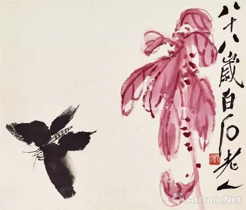 lOT 0891 齐白石(1863-1957)蝶虫小品 设色纸本 镜心 出版:1.《二十世纪美术作品档案齐白石 2》 二十世纪美术作品档案编委会编,河北出版传媒集团 / 河北教育出版社出版发行, 2013 年 12 月。